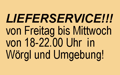 von Freitag bis Mittwoch von 18-22.00 Uhr in Wörgl und Umgebung! (mind. Euro 20,- Bestellwert)